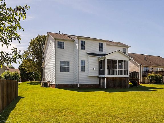 4BR/3BA home. Lg living rm w/ gas log fireplace open to kitchen. Formal dining rm. Kitchen with island and pantry. Master w/ vaulted ceilings, master bath w/ dbl vanity and separate shower/ garden tub. Bonus rm on 2nd. Office on main. Home has covered front porch. Attached 3 car garage. Beautiful screened in porch w/ access to back deck. Flat yard. Home located in cul-de-sac. Close to restaurants and shopping! Call or Text 336-525-1289