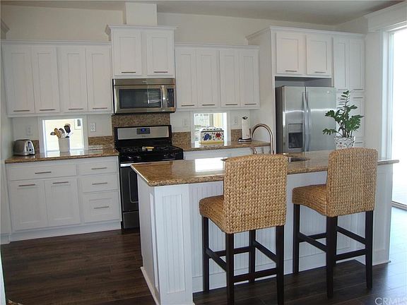 You won't believe how beautiful this single story three bedrooms or two and a den, two baths manufactured home is where residents own the land as if you buying a condominium. Located in the fabulous community of Huntington Harbour Village a wonderful 55+ community with clubhouse, pool, spa, recreation room, fitness center, putting green with low homeowners dues no space rent. Gourmet kitchen with granite counters, stainless steel appliance, loads of natural lighting overlooking the dining area and living room. Higher ceilings, convenient inside laundry room with washer and dryer. Excellent floor plan with atrium in the middle of the unit. Electric chair lift will stay with home and great storage closet or work out room you decide. The home is in turn key condition with custom plantation shutters and blinds throughout. Walking distance Harbourview park and Harbour mall. Call to view today.