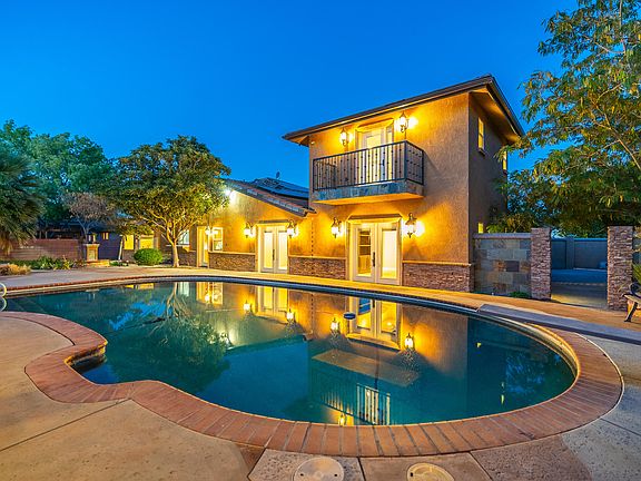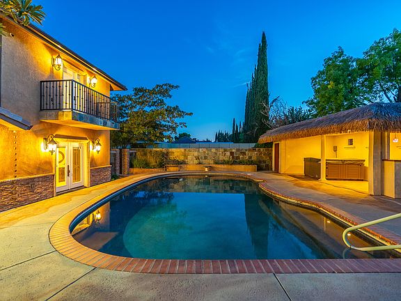 ***LIVE BEAUTIFULLY*** Stunning Gated Custom-Built Over 5,500 Sq Ft Pool Estate That Includes A 1,200 Sq Ft Fully Permitted ADU w/ A Private Entrance, 5 Garage Spaces, And A 45 Panel PAID Solar System! Over $515,000 In Custom Upgrades & Amenities! Gorgeous Curb Appeal w/ A Professional Landscaped Front Yard w/ Wrought Iron Electric Front Gates. The Main House Features A Massive Formal Living Room, A Formal Dining Room, An Office, A Family Room w/ A Rockwall Fireplace, And A Breakfast Nook w/ Vaulted Ceilings. Downstairs Primary Suite w/ A HUGE Walk-In Closet w/ Built-Ins, A Retreat Area w/ A Fireplace, And A Grand Primary Bath w/ 2 Sinks, A Vanity, A Large Therapy Jetted Soaking Tub, Emperador Gold Marble Flooring, Glass Tile Accent Walls. And A One-Of-A-Kind Floor To Ceiling Walk Through Stone-tiled Shower w/ 2 Shower Heads And Body Sprays. Plantation Shutters, NEW Windows, NEW Doors, NEWER Stucco, Upgraded Baseboards, Hand Hewn Walnut Hardwood Floors, And Hand Carved Cantera Stone Doorways Throughout Enriches The Home. The Gourmet Chef's Kitchen Boasts Custom Cabinetry, Travertine Flooring, Stainless Steel Appliances, Custom Backslash, Granite Counters, And A MASSIVE Pantry w/ Plenty Of Cabinetry, A Wine Cooler, And A Copper Sink! The South Wing Of The House Offers A Guest Family Room, A Half Bath, And An Upstairs Junior Suite w/ A Private Balcony, Walk-In Closet, And Full Bathroom! The Fully Permitted 1,200 Sq Ft ADU Showcases A Wrought Iron Custom Main Door, A Vegas Style Custom Bathroom w/ An Enclosed Bathtub & Shower, High Ceilings, In Ceilings Surround Sound Speakers, A Projector, And A Modern Kitchen w/ Plenty Of Cabinetry, Granite Counters, And A MASSIVE Center Island w/ Pendant Lighting! Attached Oversized 3 Car Garage To The ADU! Relax & Unwind In Your Completely Private Park-like Backyard That Has Mature Trees, An Outdoor Entertainment BBQ Area w/ A Fireplace, Grass Areas, A Pool Palapa, Grape Vines, An Outdoor Shower, And A Sparkling Pool! Don't Forget The 4 On Demand Water Heaters! This One-Of-A-Kind Estate Is Truly A Must See!