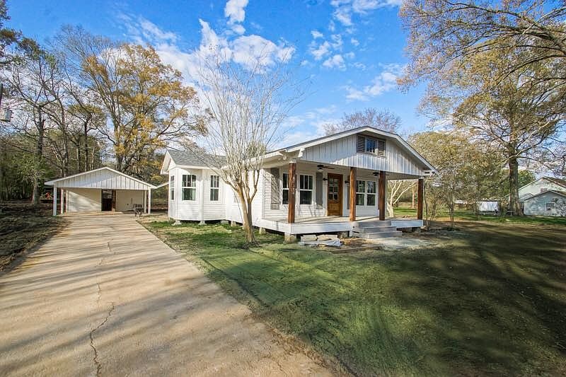 ONE OF A KIND! Cottage style home sitting on 1.5 acres with a stocked pond featuring 3 bedrooms 3 bathrooms. This home is a true southern dream home, the attention to detail is impeccable with quartz counter tops, dirty top pine flooring, octagon dot mosaic tile in bathrooms, commercial grade appliances, 72 gallon soaker tub in master bathroom with a custom shower and two walk in closets. This home has a split floor plan offering privacy for the master suite. You'll love the large spacious porches for entertaining or relaxation overlooking the beautiful 1.5 acre lot on a private rural road. The contractor was very meticulous in making sure this home did not lose the charm from its original age, from the windows to the wood detail work on the ceilings you'll feel right at home in this one of a kind southern cottage! Don't miss the rare opportunity to make this home yours!