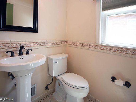 Lovely semi-detached home in Marlow Heights. Covered front stoop. Driveway parking. Living room with hardwood floors. Remodeled powder room with new sink, toilet, tile and lights. Kitchen with gas range and 42 inch cabinets. Three bedrooms upstairs and a full hall bath featuring new tile, sink, toilet, light and mirror. Fully finished basement with rec room and laundry/utility/storage area. Maintenance free brick exterior. Fenced rear yard. Many new light fixtures and hardwood floors. HVAC updated in 2014. Water heater updated in 2016. Must see!