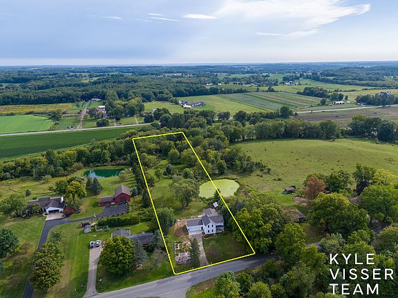 Step into this completely renovated farmhouse that perfectly blends modern amenities with timeless charm. In 2022, this home received a comprehensive upgrade with a newly added upstairs and expanded first floor, a brand-new garage, and all-new electrical and plumbing systems. Modern living is at your fingertips with new appliances, a high-efficiency furnace, and an A/C unit. The entire home was thoughtfully updated with fresh flooring, drywall, insulation, fixtures, and more, making it truly move-in ready. The living room welcomes you with all-new flooring and fresh paint, while keeping with original character with detailed trim around the windows. The open-concept kitchen and dining area are designed for both everyday living and entertaining, featuring new flooring, updated lighting, quartz countertops, a walk-in pantry, and newer appliances. The seamless flow into the spacious family room makes hosting a breeze. The primary suite is a serene retreat, positioned at the back of the house to offer panoramic views of the property and direct access to the back deck. The spa-like en-suite bathroom boasts a glass shower and a large soaking tub for ultimate relaxation. Convenience meets style on the main level, where you'll also find a half bath, a laundry room, and a mudroom. Upstairs, the home offers four additional bedrooms and two full baths, providing ample space for family or guests. The basement rec room is a blank canvas, ready for your personal touch to create even more living space. Situated on nearly two acres with wooded views and access to a pond, this property offers the perfect blend of rural tranquility and modern convenience, just minutes from downtown Byron Center.