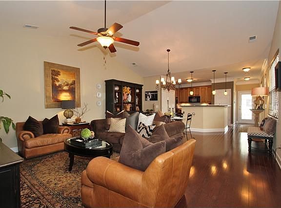 Experience Luxurious Living in This Upgraded One-Story Townhome! Rare End Unit w/Detached Garage, Fenced Courtyard, Covered Patio, Maple Hardwood Floors, Vaulted Ceiling, Chocolate Glazed Cabinetry, Porcelain Tile. Walk to Community Events, Dining, Shops!Brokered And Advertised By: Keller Williams RealtyListing Agent: Aaron Armstrong
