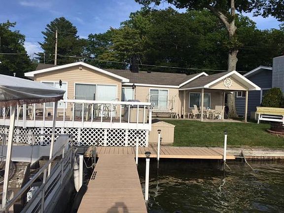 Spend this summer riding in your boat not riding on a lawnmower. This 3-bedroom ranch cottage occupies a majority of this 50 X 50 lakeside lot meaning more water tine and less yard time. On the inside of this year round cottage you'll find vinyl replacement windows, a natural fireplace, and plenty of room regardless the size of your family. On the waterside you can enjoy the 18 X 14 shoreline deck where you can grill, entertain and fish without ever leaving the comfort of your lounge chair. For those rainy days you can still enjoy the outdoors under the 10 X 12 covered lakeside porch and in the evening you can sit around and swap fishing tales around your outdoor fire pit as you watch the sun go down. This year round cottage has everything you need to start making lakeside memories. Also, flood exempt! See it today....