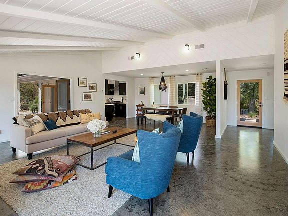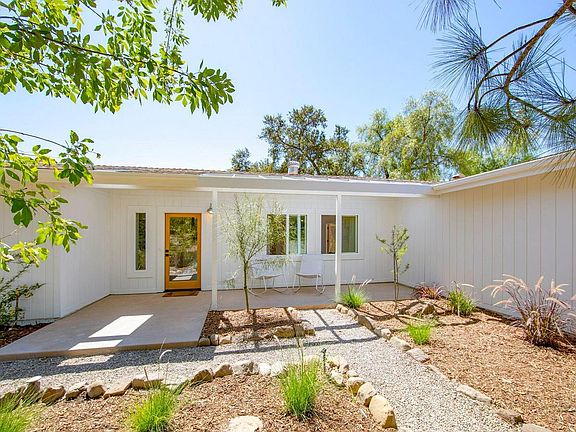 Let the romance of Ojai's East End, with its magical lifestyle of quiet sophistication and privacy mesmerize you! Explosive and dramatic mountain views will take your breath away. This private, vibrant, uplifting and blissful, cozy, hide-away ranchette is flooded with natural light and was designed to integrate interior and exterior living seamlessly. The home is centered around a sensational great room featuring a river stone fireplace, the quintessential ideal of a nostalgic hearth, taking you back in time when life was simpler and seemingly sweeter. French doors throughout capturing the inspiring views. Just down the hall, there are three adorable guestrooms and a master suite that opens onto its private patio spiffing an outdoor shower. Various outdoor living spaces offer expansive and unobstructed views of the mountains. A majestic oak tree provides a stunning canopy above the spacious entertainment patio. Naturalistic landscaping & family orchard. Turnkey - Welcome Home!