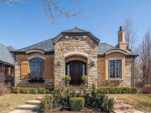 Stylish French Country home located in the prestigious Stone Gate River Bottoms neighborhood- just minutes from BYU, Provo Canyon and Timpview High. Home features gourmet kitchen with deluxe stainless appliances which opens both to outdoor patio as well as family room with custom built ins, tall ceilings and brick fireplace. Upstairs features 3 bedrooms-- including spacious master suite with deluxe custom shower and walk in closet. Basement features 2 more bedrooms, large family room with 2nd kitchen as well as large movie theater perfect for entertaining. Every detail considered in this home--including plantation shutters throughout, custom lighting and woodwork as well as 4 charming fireplaces and new furnace. Corner lot has unobstructed mountain views as well as a fully fenced yard with covered patio seating. Additional washer and dryer hookups are in the basement storeroom. **No Morning Showings. Seller needs 5-6 business hour notice**