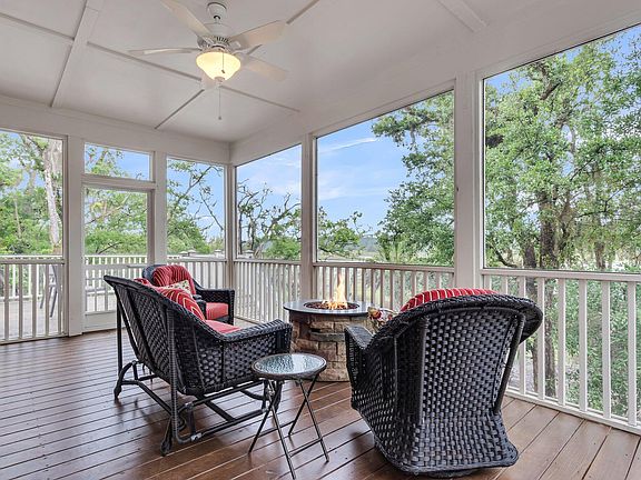 A true waterfront dream awaits on this extraordinary 11.72-acre estate nestled along Tom Point Creek. Seller has applied for dock permit. Surrounded by the natural beauty of the Lowcountry, this impressive property offers serene marsh views, expansive water vistas and a level of privacy and tranquility rarely found.As you approach the home along a long, tree-lined driveway, the peaceful surroundings and well-maintained landscape set the tone for the elegance within. The beautifully manicured front yard, spacious parking pad, and graceful double staircases leading to the front porch welcome you to a home that is both charming and refined.Inside, the grand two-story foyer, framed by double front doors, introduces a bright, open floor plan enhanced by rich wood flooring, crown moldinand 9-foot ceilings. To the left, a formal dining room offers an inviting space for gatherings, highlighted by classic wainscoting and natural light. The heart of the home is the gourmet kitchen, complete with stainless steel appliances, leathered granite countertops, an abundance of cabinetry, a stylish backsplash, a walk-in pantry, and a sunny eat-in area with access to the rear porch. The adjacent family room exudes warmth with a gas fireplace accented by a brick surround and custom built-ins, seamlessly connecting to the screened porch and deck. The main level primary suite is a private sanctuary featuring direct porch access, dual walk-in closets, and a luxurious en suite bath with a jetted tub, frameless tile shower with dual shower heads, and a dual sink vanity. Also on the main floor is a spacious laundry room with a sink and ample storage, designed for both function and convenience. Upstairs, a central loft offers flexible living space complete with a wet bar, along with a second primary suite with a walk-in closet and elegant en suite bath. Two additional bedrooms share a well-appointed full bathroom, providing comfortable accommodations for family or guests. The outdoor living experience is equally impressive. A saltwater swimming pool with a paver deck and full fencing invites hours of relaxation with breathtaking water views as the backdrop. A detached garage offers exceptional storage for a boat, equipment, or hobbies, while the attached garage provides ample room for vehicles and additional needs. Thoughtful enhancements such as solar panels (paid off), a reverse osmosis system, two generators for the home and pool, and a tankless water heater add comfort and efficiency. The community boat ramp offers easy access to the surrounding waterways, perfect for those who cherish coastal living. Every detail of this estate reflects the essence of Lowcountry luxury, where peaceful waterfront living meets timeless Southern charm.
