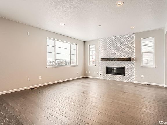 This stunning two-story Leah model backs to open space and is designed to exceed your expectations with luxurious designer upgrades! The main floor features elegant hardwood flooring throughout, offering ample space for dining and entertaining. The great room welcomes you with a breathtaking full-height fireplace and seamlessly flows into the open dining area. The gourmet kitchen is a chef’s dream, with a quartz center island, a walk-in pantry, and a stylish tile backsplash. Step onto the walk-out deck to enjoy additional seating and picturesque mountain views. Upstairs, you’ll find two spacious bedrooms and a shared full bath, perfect for guests. A versatile loft and a convenient laundry room sit just outside the owner’s suite, which showcases a private bath with large luxury walk-in shower and an expansive walk-in closet. Beautiful tile flooring enhances both bathrooms and the laundry room. The finished walkout basement offers even more living space, featuring a wide-open rec room with a sleek wet bar and quartz counters—perfect for effortless entertaining! A basement bedroom and shared bath complete this exceptional home.