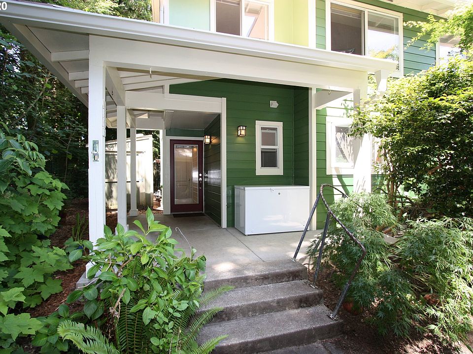 Amazing secluded townhome in a wonderful cohousing community nestled on a beautiful 2.86 acres. Custom glass front door, Marmoleum entry/bath floors remodeled ceilings, tiled dining/living rm, recessed lights, oak trim, picture window & wood-stove. Alder steps up to cork flooring, oak trim, remodeled bathroom with heated tiles, Toto hardware & porcelain soaker-tub & upscale vanity. Water heater 2015; Ductless dual-head heat pump 2019 Bckyrd patio, chicken coop, small & large shed, mature trees.
