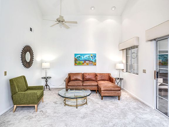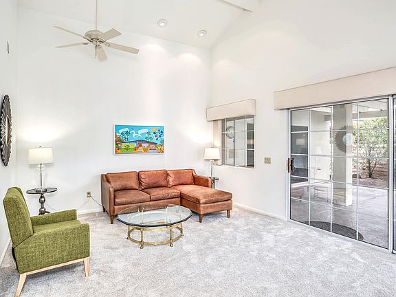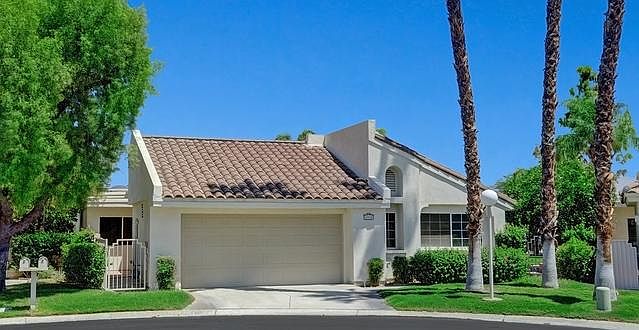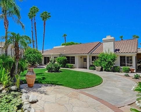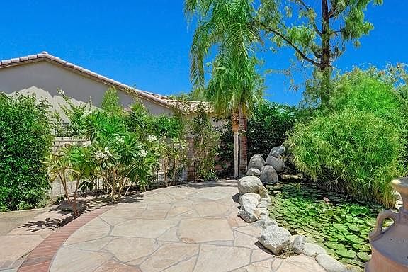 This is a Good One! Tucked away on a peaceful cul-de-sac, this updated 3BR/3BA Single Family Detached is one of the nicest properties available in the ever-popular gated community of Desert Breezes in Palm Desert. Upon entering through the privacy gate of this lovely property, you'll be mesmerized by the expansive yard with soothing rock waterfall and koi pond, desert succulents, citrus trees, and grassy areas. Ultra-Private and walled for pets. Double door entry leads to the spacious floor plan, soaring ceilings, lots of windows and skylights throughout welcoming tons of natural light, tile flooring, recessed lighting and plantation shutters. Living Room with fireplace. Bonus Room - currently a TV Room. Granite Kitchen with gas cook top opens to the Dining Area and additional counter space - currently an office area. Bedrooms #1 and #2 are nicely separated from the Generous Master Suite with direct access to the large covered patio. Master Bath offers dual sinks, over-sized Shower, walk-in closet. Newer HVAC and Water Heater. Laundry Room. Two Car Garage. Desert Breezes offers Clubhouse with fitness center, large lap pool, 5 lighted tennis courts, 6 community pools/spas. Low HOA.