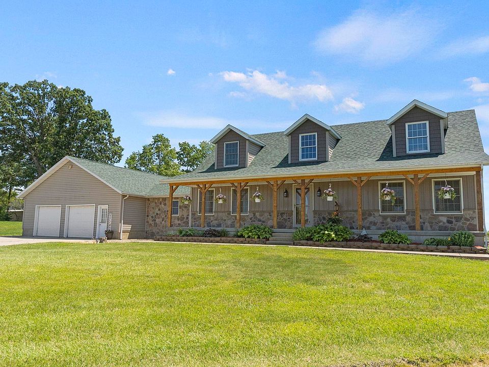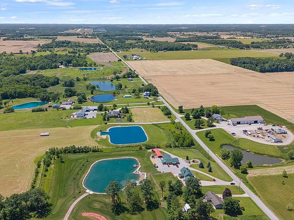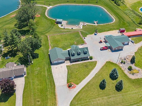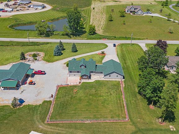 Country living awaits you at this very unique property on 4.61 acres. The main home features 2983 sq. ft. of living space, 3 bedrooms, 3 1/2 baths, year-round sunroom, a master suite on the main level, a spacious kitchen with custom cherry cabinets, and a den. The upper level features 2 bedrooms, a loft, and a full bath. 32 x 40 attached garage. Fenced-in backyard. Completely renovated 30 x 50 building in 2023. Features an open floor plan, bedroom, walk-in shower, spacious kitchen with maple cabinets, and a 30 x 30 heated attached workshop with an overhead door. Would make a nice Airbnb, guest house, or great for a family member. The backyard oasis features a 1 acre stocked pond, trex pier with an aluminum ladder, an awesome firepit, 50 ft. of sandy beach, and a gorgeous pavilion with an outdoor kitchen, fireplace, and a saber grill. New shingles with complete tear off on the main home in 2023 and 2024 on the building. Both have GEO- thermal new in 2022 and 2023. Water softeners new in 2022 and 2023. Great location!