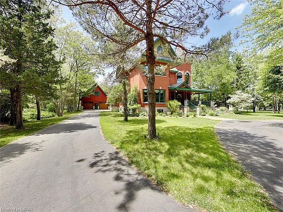 Chance of a lifetime to own a "new" Victorian home. Must see to believe! Custom built by owners in 1996 from authentic historical plans. Nestled on secluded 3.5 acre lakefront estate with beautiful gardens and a stunning lake view only 10 minutes from Sarnia. Exquisite craftsmanship and attention to detail. No expense spared. Solid wood trim and doors throughout this home, plastered walls with designer ceilings and coving, custom hand crafted oak staircase, 9 exquisite custom stained glass windows, solid maple 2 tone cabinetry with maple countertop. Additional 3rd floor unfinished bonus rooms (~500 sq ft) accessed from one of the bedrooms as well as 1800 sq/ft open unfinished basement. Oversized deep garage 28ftX30ft with a second level of 14ftx29ft. 154ft of private lakefront deeded to waters edge with stunning sunsets. Sewers, municipal water and gas!