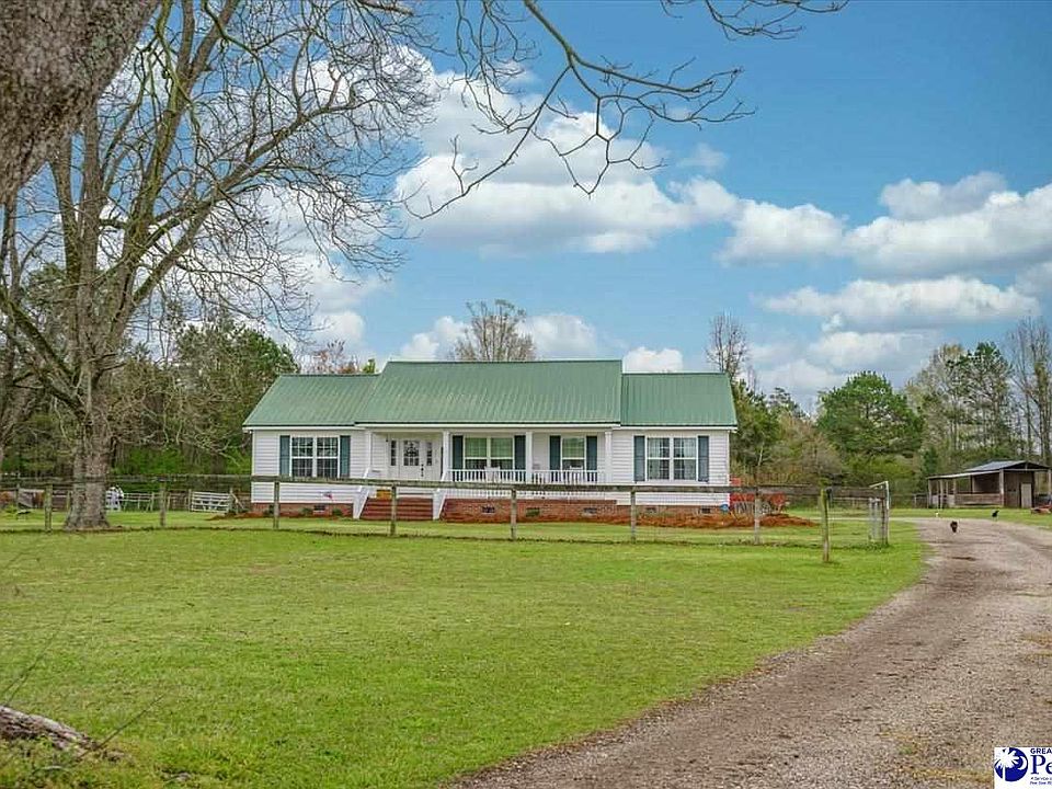 This beautiful 3 bedroom 2 bath home sits on peaceful 5 acres of land! The dream of country living can become reality! Property includes 2 fenced pastures, a 2 stall barn with tack/storage room, 2 bay shop, and large pecan trees. The home features an open floor plan, vaulted ceilings, built in bench with storage, gas log fireplace, double vanities in both bathrooms, garden tub with jets, walk-in closet, and laundry room with utility sink. Enjoy the sunrise/sunset on the front porch or back screened porch. Currently, occupant can pick the Florence District 1 Middle School and High School of your choice. Qualifies for USDA financing! This gorgeous property has so much to offer and will not last long!