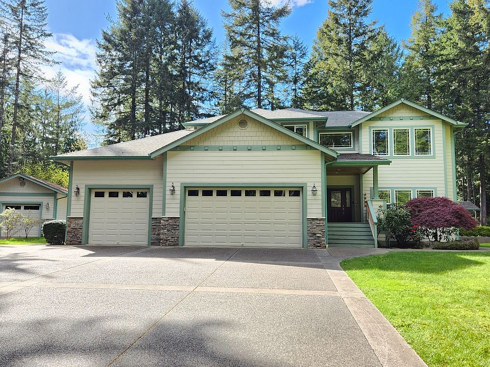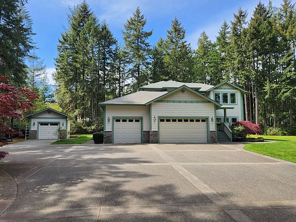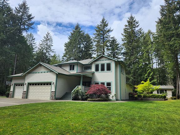 Beautiful custom home in Silverdale. Very Desirable Silverdale Location! Grand kitchen with large Island, granite counters, stainless steel appliances, maple cabinets and floor. Spacious primary suite with 5-piece primary bath and private office. High ceilings. Light and bright rooms. 3 car garage with custom shelving and lots of storage! Bonus room. Separate sauna house. Exposed aggregate driveway and patio, shop, sprinkler and security systems. Wired surround sound system inside and out. Water/septic included in rent. Gas fireplace and furnace. A/C. A lot of parking. Washer/dryer. Yard care provided. No pets please. Available 4/1/2025 3D tour