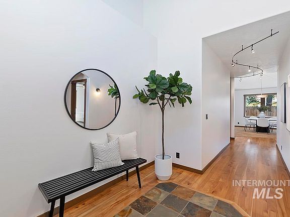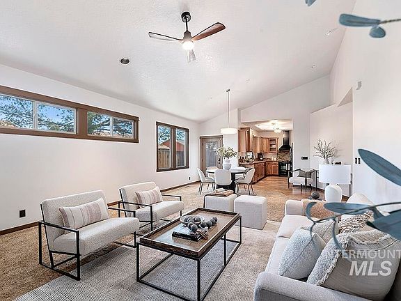 Experience timeless luxury living in the esteemed Promontory Ridge community in Southeast Boise! This residence boasts a spacious open floorplan, soaring ceiling heights, and a main-level master suite. Adorned with beautiful hardwood floors and fresh, neutral paint, the ambiance is refined yet inviting, enhanced by modern light fixtures and ample natural light streaming through large windows. The gourmet kitchen provides ample space for food prep, featuring granite countertops, newer appliances, and a generously-sized walk-in pantry. The master suite, conveniently located on the main level, offers an en suite bathroom outfitted with dual vanities and a fully-tiled walk-in shower. Step outside to the charming back patio, surrounded by low-maintenance grounds. Positioned just moments away from the community pool, parks, and sports courts, and just minutes from the Greenbelt and foothill trails for outdoor enthusiasts. Perfectly situated in Southeast Boise, with easy access to Micron, the Airport, and downtown!