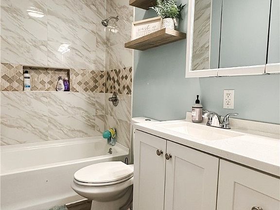 Welcome to this stunning ranch home located in the highly desired Warren School district. Boasting three bedrooms with the possibility of a fourth in the lower level and FIRST FLOOR LAUNDRY! Step inside and be captivated by the gorgeous renovations that have been done to all three full bathrooms. Gutted down to the studs and immaculately remodeled, these bathrooms are a true showcase of modern style. The first floor of this home features brand new carpeting, providing a cozy and comfortable atmosphere throughout. With a new roof installed in 2021 and a new HVAC unit in 2022, this home offers not only updated aesthetics but also peace of mind when it comes to the major systems. Additionally, a new gas tankless hot water tank and septic aerator have been recently added for ultimate convenience and efficiency. Step outside onto the beautiful covered deck on the main level, offering a serene space to enjoy the outdoors while providing shade and protection from the elements. The lower level
