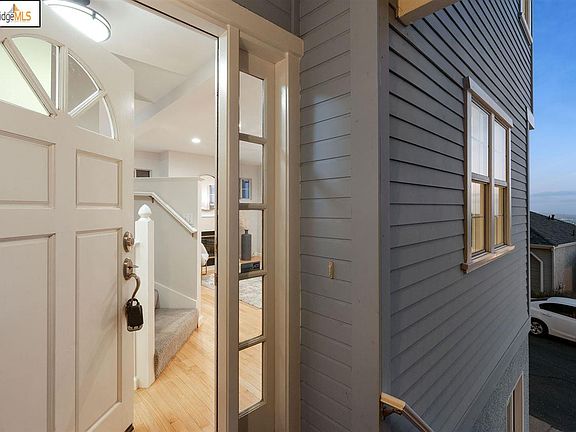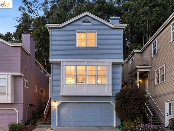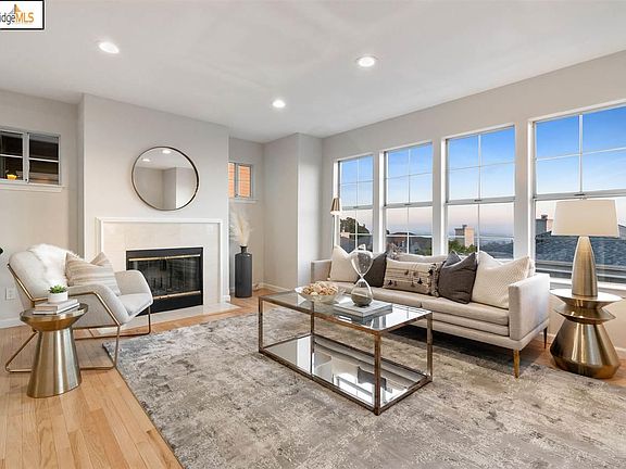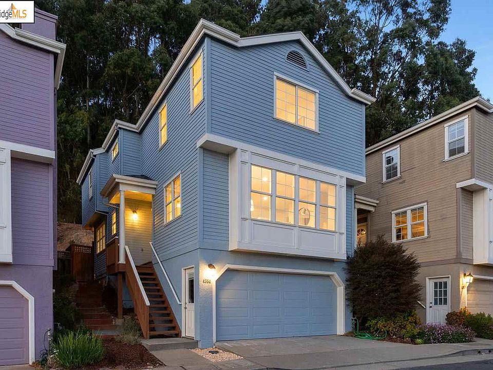 Spectacular bay, bridge, and SF skyline views will dazzle you as you enter this updated Montebello Terrace home. The main floor layout is open and bright, with freshly refinished oak floors, a combined dining room and living room with a fireplace, a half bath, and a spacious eat-in kitchen with direct access to the private backyard. The updated kitchen features stainless appliances, quartz countertops, two-tone cabinetry, and elegant brushed brass cabinet hardware and sink fixtures. Upstairs you'll find two spacious bedrooms, a full bathroom with laundry, and the primary bedroom suite, which features stunning views, a walk-in closet, and an ensuite bathroom. A commuter's dream, just minutes from highway 580 and 13, with an attached two-car garage with interior access. Less than half a mile to Peet's coffee, and shopping and dining at Lincoln Square. Minutes to Redwood Regional, Leona Heights, and Joaquin Miller parks, as well as The Oakland Hills Tennis Club and Chabot Space Center