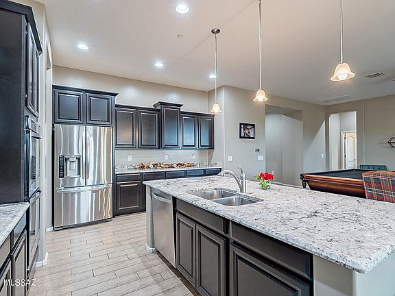 Beautiful 5 bedroom home with an incredible backyard view of the Tortolita mountains! Chef's kitchen with large island, granite and stainless steel appliances, and a huge walk-in pantry. The split bedroom floor plan is perfectly laid out. Tile in the main living areas will make cleaning a breeze while carpet in the bedrooms will add the comfort you want. There's even an extra hang-out space in the guest bedroom area. The spacious 3 car tandem garage will fit all your toys too! The beautifully landscaped backyard will let you relax as you enjoy the sunsets.