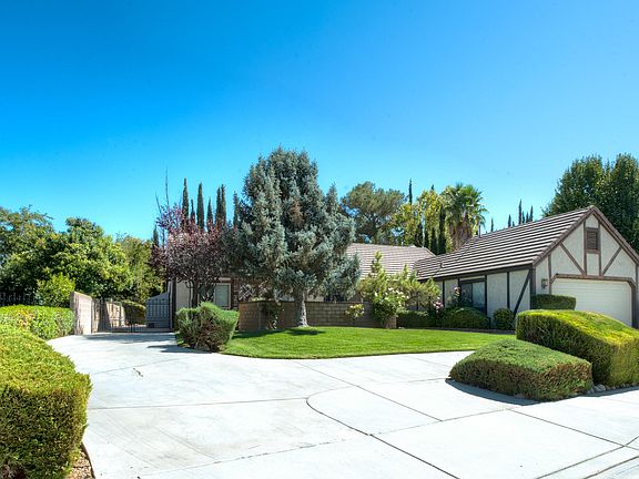 Discover this charming Tudor-style single-story pool home, nestled on an expansive 10,000 square-foot lot with mature landscaping in a well-sought-after, semi-custom neighborhood. With no HOA fees or Mello Roos, this home offers a rare blend of privacy and convenience. The property boasts a gated, paved RV access, tile roof, block walls, and a circular driveway providing ample parking. The enchanting front yard courtyard adds a welcoming touch, while inside, parquet hardwood flooring graces the living spaces. The home features 3 bedrooms and 3 baths, along with a separate formal dining room, a cozy family room with a fireplace, and french doors that open to a sparkling inground pool, spa and tranquil backyard, perfect for entertaining or relaxing. HVAC and pool equipment were recently replaced! Located within walking distance to key community attractions, such as the ever-expanding Antelope Valley Community College & Performing Arts Center, the serene Prime Desert Woodland Preserve, public and private schools, parks, grocery stores, and restaurants—this home is truly in the heart of it all.