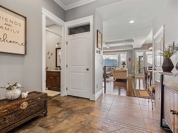 Definite wow factor! From the moment you walk in you'll be taken back by the soaring 10' coffered ceiling, crown molding, wall to wall windows & 180 degree view of the Fraser River, city lights & mountain range as far as the eye can see. The huge gourmet kitchen comes complete with granite counters, a pantry, newer S/S appliances & professional grade Fisher & Paykel gas stove. Every floor has a bedroom with an ensuite that could be used as a primary. There's also a deck on every floor to take in the view, with the second floor deck engineered to hold a hot tub. Lots of room for the family to spread out here. Take in a movie in the media room, or do some entertaining in the rec room w/ wet bar downstairs that walks out the large yard space, that also has a view! A must See!