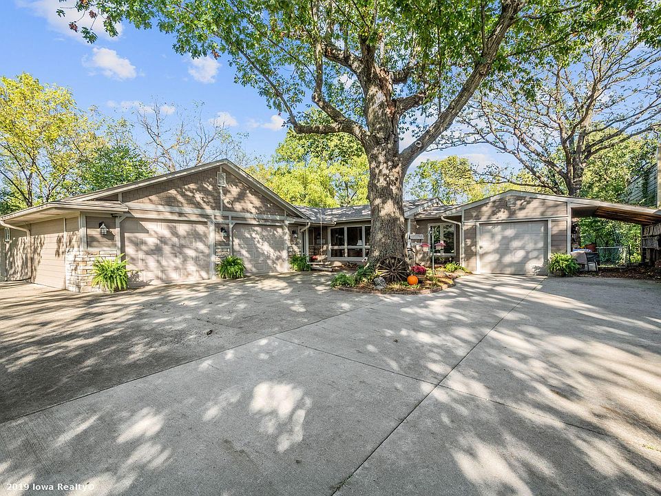 This home sits on a beautiful wooded lot on ¾ acre of property. Fenced backyard backs up to a wooded greenbelt. Lots of oak, walnut, and redbud trees accent this lovely 3 bedroom walk out ranch with stone accents. Home includes new paint, roof, and Leaf Guard gutters, with a three-car heated garage and workshop. Motion and light sensitive detectors on the exterior. Ample storage in both the home and garage. Interior includes new vinyl flooring, a full Butler pantry, and custom woodworking accents throughout. Lower level includes a finished Family Room, and bedroom with personal dressing area and bath. Johnston Schools. Hurry