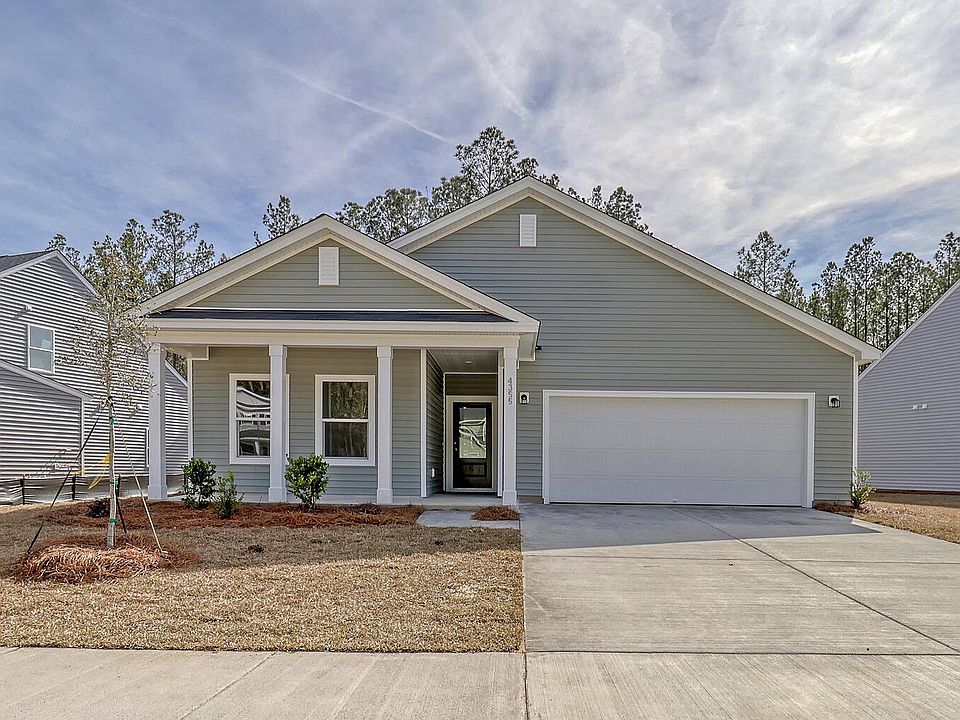 READY NOW! This stunning single- story home is situated on an exclusive extremely spacious and private wooded homesite! It backs up to woods, is across from a cul de sac and is 90 feet wide on the front! The single-story, open-concept Truman plan lives large with three bedrooms, large study with glass french doors, a living room with a gas fireplace that flows seamlessly into the breakfast area, a covered front porch, and an extended rear back porch backing up to a private wooded backyard. An upgraded kitchen overlooks the main living areas and includes upgraded 42' cabinetry, quartz countertops, modern tile backsplash, gas range, microwave hood, and a large center island! This home also features a 3/4 glass front door & two sinks in the guest bathroom.The spacious family room has abundant natural light and a gas fireplace with a designer inspired floating shelf wrap mantel! The elegant and spacious primary suite is privately tucked at the rear of the home and offers a spa like bathroom boasting a large walk-in closet, private water closet, double vanity with quartz countertops, and an oversized tiled walk-in shower with a bench seat & soap niche. Luxury vinyl plank flooring is throughout the main living areas! Completing this beautiful home is the covered rear porch located off the family room that looks out onto the serene woods, making for the perfect spot to enjoy your morning coffee or unwinding after a long day! Watson Hill features a Junior Olympic sized pool, playpark, club house, gas fireplace & grilling stations, picnic area, sports field, dog park, "pocket parks", walking trails and more! Watson Hill is centrally located between Summerville and West Ashley offering all the conveniences the low country has to offer. With close proximity to Lake Moultrie, Lake Marion, Cypress Garden Plantation, Azalea Park, Hutchinson Square and a short drive to downtown Charleston and the beaches you can spend your days and nights enjoying an abundance of activities or just relaxing poolside at the neighborhood amenity center!