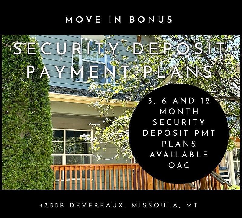 **APPLICATION PENDING** RENT REDUCTION & MOVE IN BONUS $500.00 OFF FIRST MONTH RENT Reducing Barriers, Opening Doors: Rent Smart Property Management is proud to be the first PM in Missoula offering the renter community a reduced barrier of entry in securing your next home. We have partnered up with a 3rd party vendor who offers 3, 6, 9 or 12 month payment plans on your security deposit. Secure your new home with a fraction of the move in fees! Upon application approval and acceptance of our lease terms, you will be sent a link to qualify for your payment terms. * Payments are made online directly to the vendor who will hold your deposit through the term of your lease and refund your balance due after you vacate in accordance with the MRLTA. This property is available NOW, lock in this rate through June 16, 2026. Rent begins when the home is rent ready, which may be earlier than the estimated availability date. Features include: - 3 Bedroom/ 1.5 Bathrooms - Dishwasher - W/D hookups - Laminate flooring in dining room and kitchen, upgraded light fixtures, full unfinished basement - Covered front porch, back patio and storage shed - Owner provides sewer and trash - Resident pays $45.00 trash fee, gas, electric & water invoice - Conveniently located nearby the North Reserve Street Corridor, the Airport and I-90 - Two pets considered! One dog + one cat or Two cats Pet acceptance procedure: Please review our pet acceptance policies and procedures on our website. All pet owners must submit an application for each pet to be considered. Service animals and ESAs are not subject to any additional fees. Additional pet rent starts at $55.00 per month per pet, deposit starts at $500.00 per pet and pet acceptance fee of $150.00 per pet. Showing Instructions: Please review our application policies prior to submitting application. Lease is subject to admin fees, renters insurance is required. A lockbox is installed for self showings 7 days a week from 9am - 7pm, come take a look! Disclosures: Applications are processed in the order received and must be accompanied by the application fee and supporting documents in order to start processing. It is understood that more than one set of applications may be taken on the property. Please be advised the burden of completing the application and providing the required additional documentation and or cosigner application is on the applicant. Incomplete applications will delay the process and could result in rewarding the property to another applicant, or even denial. Applicants are not considered on a first come first served basis. Multiple applications qualifying on the same property is based on a best-qualified basis using a scoring system and on the property owner's needs. Lease is subject to admin fees. Please review leasing policies and application approval policies prior to submitting application. Renters liability insurance is required. Rent Smart offers Tenant Liability Insurance for $15.00 per month which covers your entire household. $100,000 liability, $10,000 personal property. This lease includes our Resident Benefits Package which has been created to add value, convenience, and transparency. This benefit starts at $15.00 per month, + $3.00 per each additional leaseholder. No smoking or vaping anywhere premises. Application fees are non-refundable. Photo and video may be of similar apartment within community. Ground floor apartments do not have vaulted ceilings. Photos depicting furniture have been digitally staged. * Rentable charges a one time payment processing fee of 3% or $39.00. Additional fees may apply for the Security Deposit Payment Plan. Updates on our website with further information about Rentable are currently pending.