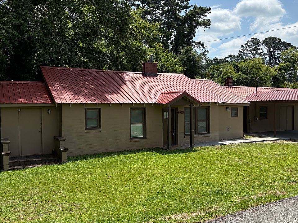Very nice 3 bedroom, 2 bath one level home with all hard surface wood-like floors (no carpet). Kitchen equipped with side by side refrigerator with water & ice on the door, gas self cleaning oven/stove, fairly new microwave & dishwasher. Dining area with built in seating, living room with ceiling fan, large laundry room with cabinets. Freshly painted deck, fenced backyard, brand new concrete & large storage building/workshop. Central heating & air, double pane windows & faux blinds. Resident responsible for all utilities and lawn maintenance.