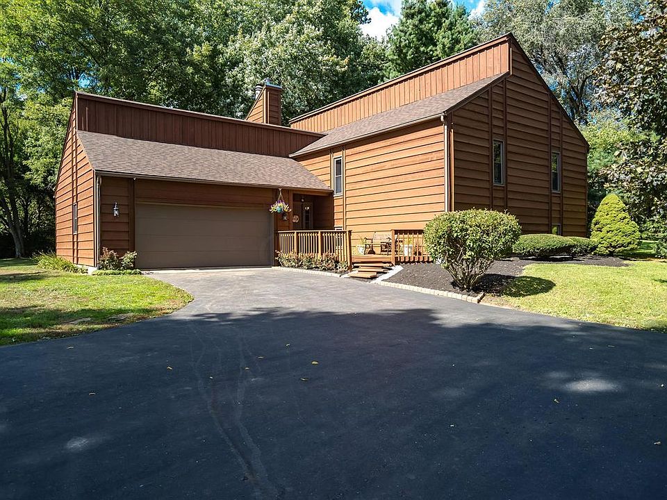 Beautiful setting on almost an acre lot directly across from Pine Hill golf course. Mature trees gives this setting a lot of privacy. This home boast 4 bedrooms with over 2700 sq ft of living area and offers 4 nice sized bedrooms. Additional rooms include a living/great room with wood burning fireplace, a formal dining room, family room with wood burning stove and a kitchen with eating area. This home is neutral throughout and is in move in condition. New roof in 2018 and the exterior of the home was just painted. Sellers are motivated they are moving out of state. County setting but close to state route 33. America's Preferred Home Warranty in place