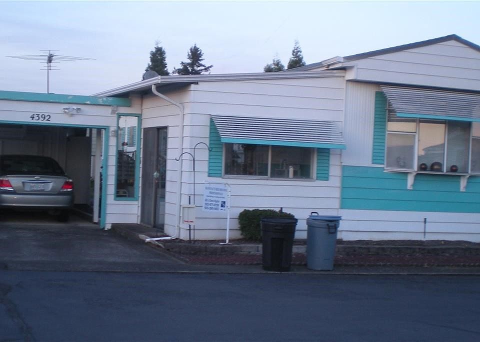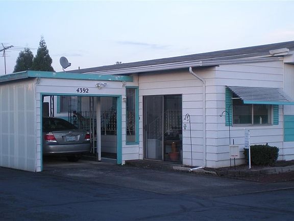Cute and dozy home wupgraded comp roof and trane heat pump. Located in quiet corner of 55+ park. Enjoy the view from the front dining area and bay window. Small built in hutch and desk area. Banana bar separates kitchen from spacious living room. Washer and dryer hook up inside, large bath with doublr walk-in shower. Two spacious bedrooms. Nicely landscaped yard with underground sprinkler system. Breeze way from carport to home with large covered deck and pation. Carport with overhead garage door.