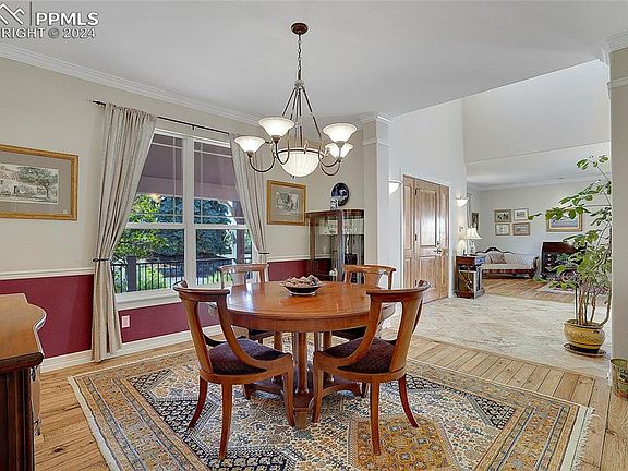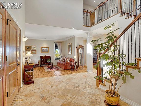 Located on 35 acres in the desirable community of the Ranch At Coyote Ridge, this stunning 6-BR home features breathtaking mountain & city views, acres of wild meadows, rock waterfall & a charming wrap-around porch. This exquisite home showcases hand-scraped hickory wood floors, tumbled marble tile, stone gas fireplace w/built-ins, formal sitting room, wainscoted dining room, radiant heat, soaring ceilings & a library-style office w/glass double doors. The sunroom’s wall of windows & cozy gas fireplace make it ideal for morning coffee. At the heart of the home, the chef's kitchen is complete w/high-end granite countertops, SS appls, gas stove, farmhouse sink, wine cooler, nice pantry, peninsula breakfast bar, 2 built-in ovens & custom 55” high knotty alder wood cabinetry w/lighted glass doors. Laundry room incls utility sink, W & D, cabinets, counters & new flooring. Retreat to the expansive primary suite w/French doors, stone gas fireplace, hickory floors, plantation shutters, gorgeous mtn views & spacious walk-in cl w/drawers & built-ins. The master bath offers dual sinks, steam shower & a luxurious free-standing tub. Large secondary BRs w/mtn views. Walk-out basement boasts a kitchenette, wet bar, rare 10' ceilings, projector screen, pool table, BRs & spacious office w/gas fireplace. Step out to the courtyard or enjoy the seasonal pond from the deck. Oversized 3-car insulated, heated garage w/H & C bibs. The versatile outbuilding/barn has a large heated workshop w/220 outlets, horse stalls & 3 garage doors including one that’s 14' H X 12' W and a 6" thick pad for RV. Such a well-maintained home w/new well pump, septic tank, newer water filtration! Zoned A-1 w/35 acres+ allows so many principle uses! In a small town but only 8 minutes east to the CR Outlet Mall w/100 stores & restaurants! Or head up the canyon to explore Pikes Natl Forest, rafting & fishing on the South Platte river. This property truly is absolutely amazing!