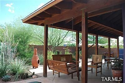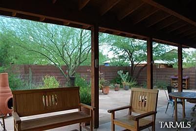 Enjoy the convenience of an in town retreat. SW barrio style home is all character & charm. Set in intimate gated common. Near UA. Color-infused concrete flrs & wood beams ad architectural interest. Kitchen done to the 9's: Viking stove, vent hood & dishwasher. Energy eff. gas log fp adds warmth. Deep covered wrap around porches makes this an all season home. Hot tub to enjoy by starlight. Extended patio w/fountain makes entertaining fun.