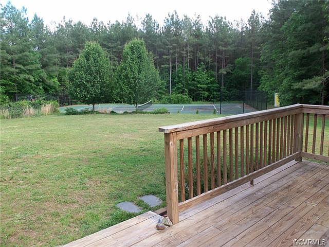 First floor living at its best on private 10 acre setting. 2006 master suite and family room addition. Wonderful vaulted ceiling living area - very open plan. Recents upgrades include - new carpet 2013, fresh interior paint, 2010 new granite kitchen counter tops, hardware and tile backsplash, wood floors living areas in 2007 and new kitchen range 2010 . Professional quality hard court tennis court - 2 tone professionally built - perfect for basketball or game court for non tennis player. Great outdoor entertaining with side screen porch and deck across rear. Trails, streams and owners deer stands thru out property for hunting enthusiast. Agricultural zoning with no restrictions. Two detached storage buildings remain. Minutes to Powhatan Courthouse, restaurants, YMCA & county park. Septic is for 3 bedrooms - one room is to be used as office. Comcast high speed internet and tv.
