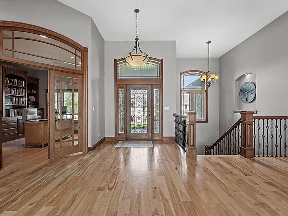 If you are looking for a luxury home in Marion with a convenient location, look no further. This 1/3 of an acre lot has sweeping views of Hunter’s Ridge golf course and is conveniently located within a mile of Linn-Mar’s main campus. This home was built for the builder’s personal residence and every detail was carefully crafted. The main floor offers 12 ft ceilings, a huge eat-in kitchen that opens onto a 4 seasons porch and a large deck that over looks the golf course. The master suite has heated tile bathroom floors and a custom walk-in closet. The basement is perfect for entertaining with a large kitchenette and a theater room.