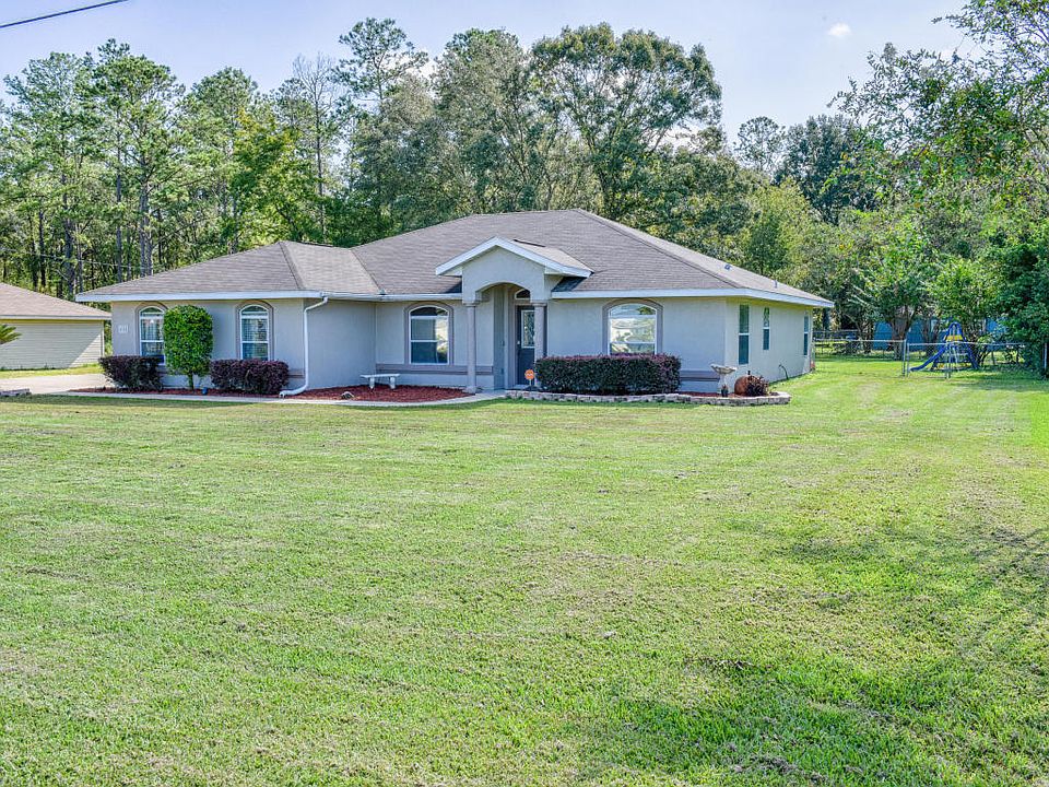 This beautiful home in the prime area of the shores with mature landscaping features an open split floor plan. 3 Bedroom 2 bath w/DEN(OR 4th bedroom) and 400sq. ft. BONUS ROOM(currently used as 2nd living room and office) But could be used as an IN-Law area!!! Upgraded kitchen with granite counter tops, professional stainless steel appliances and Tile back splash. Big master bedroom features a walk in closet. Master bathroom comes with garden tub, walk in shower and double sinks. Covered patio over looks HUGE backyard that is completely chain link fenced and features many opportunities for entertaining!!! 2 sheds for storage on back of the property!! You will not want to miss this!!! Home also comes with a 2 year home warranty! This is a must see home.. USDA 100% financing area!