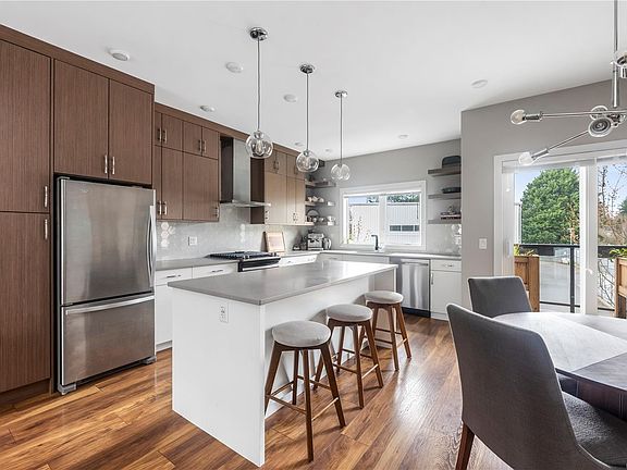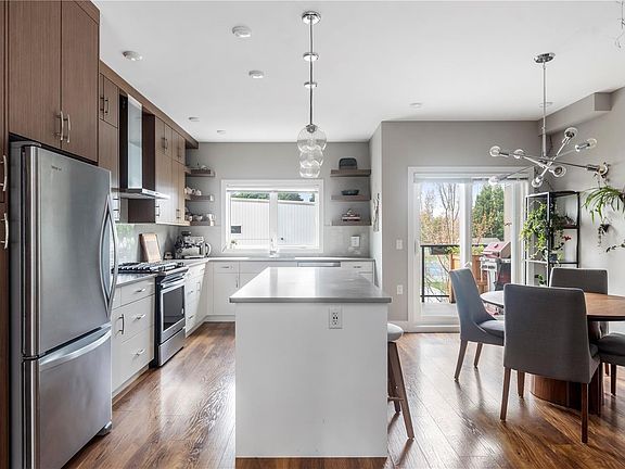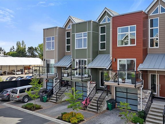 Contemporary townhome living at the Reeve! One of the most desirable blocks in the complex with 1,498 sq.ft., 3 Bedrooms, 3 Bathrooms and a private, south-facing, fenced backyard with patio! Main level boasts a designer kitchen w/ large island, gas cooktop & SS appliances. Living room with gas fireplace & separate dining area with access to a south facing balcony complement the showstopper kitchen. Upstairs is spacious and airy with high ceilings, and you'll find the primary bedroom, ensuite, 2nd bedroom, laundry & 4 pc bathroom on this level. The lower level completes the package with the 3rd bedroom, 3 pc bathroom and access to the sunny back patio area. Solar panels, central heating & AC and on-demand gas hot water bring efficiency to the home. EV charger in the garage and a 2nd parking space in the driveway! Tucked away next to Brydon Park & within walking distance to all of the amenities you need in Royal Oak: grocery store, restaurants, cafes, and Royal Oak Middle School.