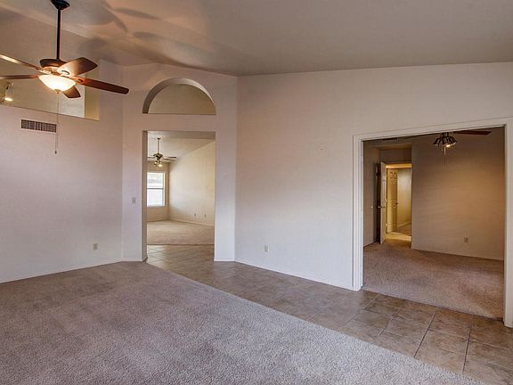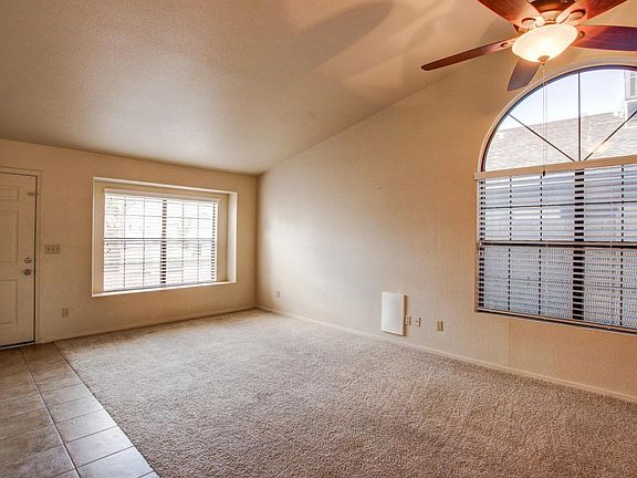 Happiness is just a door step away with this house! Soaring ceilings and picture windows throughout. Eat in kitchen is complete with center island, breakfast bar, plenty of cabinet space, and black/white appliances. Large master suite has plush carpet with bay window and spacious walk in closet! Full bathroom with double sink vanity and separate soaking tub and shower. Large backyard features a covered patio with plenty of room for entertaining! Come see it today!!