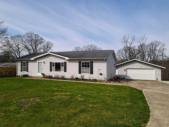 Fabulous location between Bloomington and Ellettsville with a country setting on 2 acres. This home has a split floorplan with 3 bedrooms and 2 full bathrooms. The primary living spaces are very light filled and the dining room view highlights the large backyard and wooded backdrop. In addition, there is a deck and detached garage that is over 600 square feet for vehicles, mowers, toys, or a workshop. This home has been well cared for and includes the following updates in the last 5 years: Furnace and Air Conditioning (2018), Refrigerator (2022), Washer/Dryer (2021), Lighting and Ceiling fans, Electrical outlets, Carpeting, Paint and even new Toilets. For internet, Xfinity and Smithville available. Only a 10 minute drive to IU, downtown Bloomington, shopping, schools, restaurants, Jiffy Treat and Urban Air.