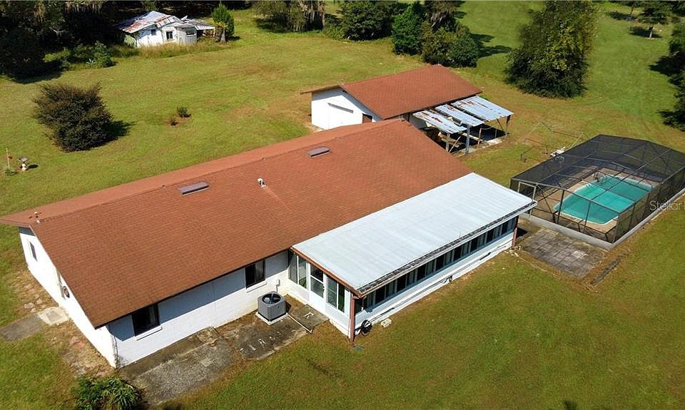Escape the hustle and bustle of the big city with this isolated country oasis "just far enough" out, but close to all the amenities of life. With mature landscaping and a wooded lot covering almost 2.5 acres, you can breath in the fresh air. Easily converting into a 3-4 bedroom home, this spacious 2,112 SqFt, 2 bed 2 bath, well-built, block pool-home with detached garage and workshop has so many possibilities. Enjoying it all can be your new pastime! Contact your favorite agent for a private tour today!