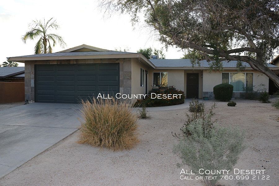 SCHEDULE A SHOWING ONLINE AT: showmojo.com/lh/e2189c50a2 Adorable 3BR/2BA unfurnished pool home available for long term lease in Palm Desert. The home features an open concept, tiled Kitchen/Living/Dining area with granite counters, kitchen island, fireplace, and patio doors leading out to the covered patio and large fenced pool area. Bring your own refrigerator. Laundry room with hookups. Master bedroom with large closet and whirlpool tub. Double car attached garage. Tenant to pay all utilities. Pool and gardening are included in the rent. Tenant has the option to pay an additional monthly fee to access services such as the clubhouse, athletic facilities, etc. if they wish. All applicants must pass a comprehensive background screening. Schedule an appointment for viewing today!!