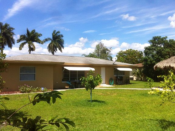 Welcome Home, SWEET, Home!!! This charming 2bed/2bath property is ready for its new owners to make it their own! Equipped with major upgrades including NEW impact windows & doors (2018), NEWER A/C system (2015) w/ NEW dehumidifier plus all NEW ductwork (2018) & NEW fascia! The home has a large kitchen allowing space to add an island, boasts an updated backsplash, plenty of cabinet space & a newer oversize stainless steel fridge (2019). This quaint property also offers a bonus room/den off of the kitchen which can be utilized as a dining room, home office, play room, or whatever you wish! Other features include a beautifully renovated master bath boasting dual sinks, frameless shower door, mosaic tile design & large walk-in closet with a custom closet system. Step outside into the spacious fully fenced-in backyard & you will be surrounded by multiple fruit trees to include: mango, dragon fruit, orange, lime, ciruelas & a cashew tree! The cozy fire pit area with solar-powered lights make this outdoor space one you'll want to spend all your Summer evenings in! This lovely home is located in great Golden Gate City location & steps from Aaron Lutz Neighborhood Park. Property sold AS IS.
