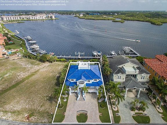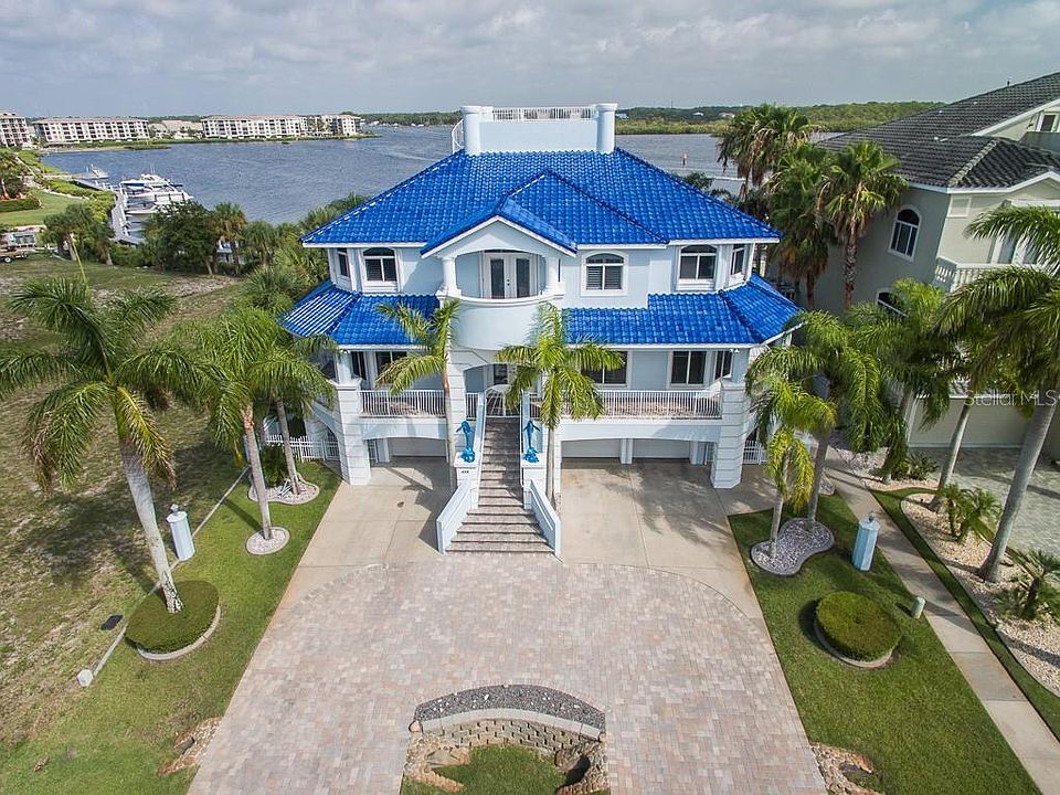 Take a moment to take in all the features of this Harborpointe masterpiece with incredible views of the Cotee River and the Gulf of Mexico is spectacular. The property is so serene yet the location has easy access to everything, conveniently located in the premier 24-hour manned gated neighborhood where you can walk or ride golf cart to stores, parks, waterfront restaurants and bars which are located just down the street. This home is built with entertaining in mind with generous covered patio space in the oversized screened in pool area able to accommodate large groups. The professionally landscaped yard surrounding the luxurious pool and spa area reminds you that you are indeed in a tropical paradise. The wide open floor plan greets you once you go through the double entry doors with space for family gatherings and large dinner parties. The custom built kitchen was designed with the aspiring chef in mind with beautiful hardwood cabinets, quartz countertops, stainless steel appliances, and a oversized butlers pantry. The home boasts a master bedroom fit for a king with a spacious sitting area with views of the river and the gulf. The master bathroom would make any queen feel as if she was enjoying a premium spa with the oversized shower and spa tub. Let's not forget to mention the private balcony overlooking the river. Then for those days you want to take in the best view in the house take the spiral staircase to the private top deck and just stare in awe of the miles of views you can see. There are 5 other bedrooms and 3 bathrooms for anyone's growing family and to be able to work from home. There is residential elevator to aid in the transport of groceries and convenience to different levels. This home is equipped with a garage built for all your toys as well as room for 4 cars and a private 16,000lb boat lift directly behind your home. If you are looking for your own masterfully created and designed piece of paradise look no further. Come Home