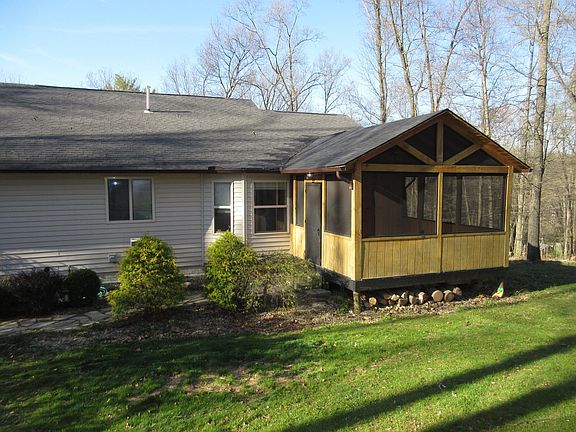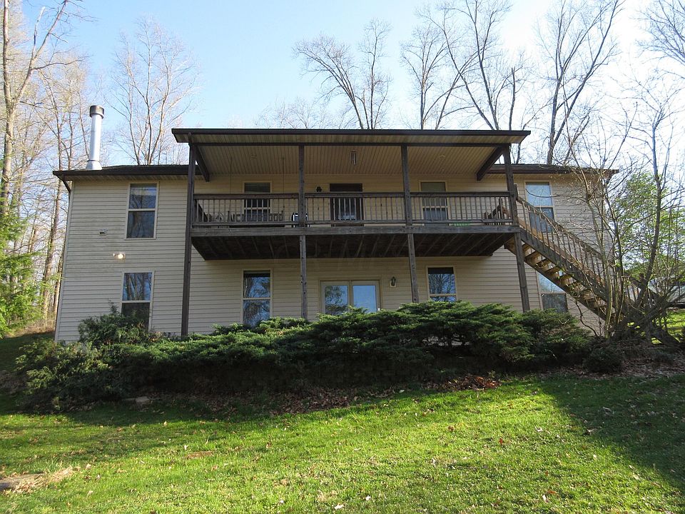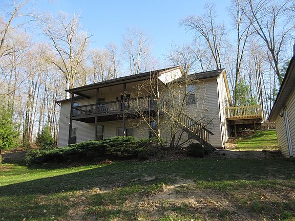 3 bedrooms, 2.5 bath home with new carpet on main level, theater room and recreation room on the lower level, 3 car detached garage plus detached pole barn. main suite with large walk-in shower, new deck off main suite. Screened porch to watch Nature on 10 acres for your enjoyment. Licking Valley Schools. Immediate occupancy. Pool table to remain. This home is ready for you!