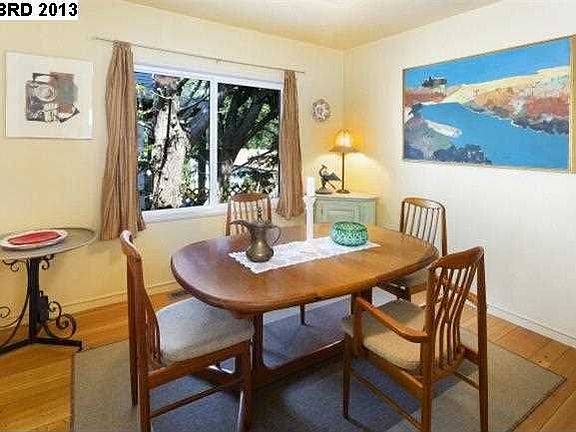 Formal dining room, living room w/ wood-fire stone-tile fireplace, full bathroom & 3 upstairs/first floor bedrooms (one being used as a home office), plus a laundry closet, one half-bath and two large rooms downstairs (one is being used as a second home office and occasionally as a guest/4th bedroom), and the former garage was remodeled/finished into recroom/workout room, backyard has two decks, flagstone patio, hot tub, 3 garden areas, mature trees and fence; front porch; 1995 seismic retrofit; 5000 sq. ft lot; central heat & a/c; closed off garage because of steep narrow driveway, but there's always plenty of street parking! Neighborhood Description Nice neighborhood and business district