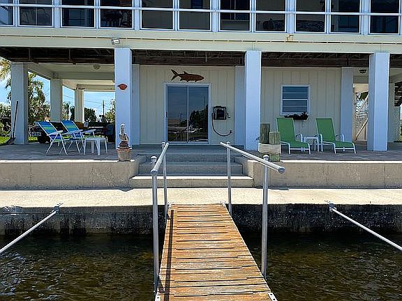 UNDER CONTRACT For Sale By Owner 3 bedrooms 2 bath Waterfront Stilt Home Direct Access, Open water view with Floating Dock to the Gulf of Mexico. Sailboat access, 90 ft of Waterfront which includes a seawall, kneewall with space for additional docks and water toys. A five-minute kayak or paddle board from your very own floating dock out to see dolphins and manatee. Located on quiet cul de sac with family friendly neighbors. Florida room with ceiling fans 50 x8 with phenomenal views. Living room and halls have brand new luxury vinyl plank flooring, Plato Woodwork custom wood soft close kitchen cabinets with glass fronts, Corian counters with ceramic tiled backsplash, pass through window, and large pantry. Large dining room with water views, Guest bathroom has matching Plato Woodwork wood vanity and Corian counter. Decorative ceiling fans in both dining and living room. Newer 37 gallon hot water tank. Lower level has generous space with cupboards and workbench for workshop/art space/mancave Hurricane windows and sliders, floating dock recently refurbished, pavers recently sealed. AE flood zone which means lower insurance cost. This home is perfect for a family or retirees. Email 4357Biscayneforsale@gmail.com