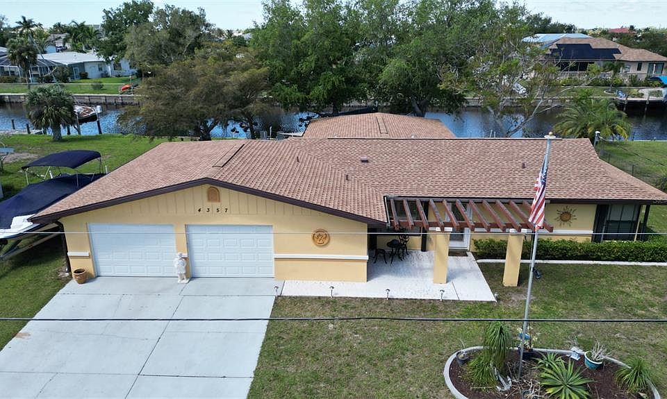 Grab that cup of coffee and step out to your lanai.....Feel the gentle sea breeze while watching a fish jump, an occasional dolphin family swimming by looking for breakfast, or one of the many types of tropical Birds fly by. ....This impressive waterfront home offers direct, deep sailboat access to Charlotte Harbor and the Gulf of Mexico, to be enjoyed by sailing enthusiasts or the avid fisherman. 100 feet of seawall and concrete dock await your sailboat.....Charlotte Harbor, a gateway to the luxurious and leisurely living by the water, this coastal paradise offers convenient access to the Port Charlotte Beach Complex, Charlotte Sports Park, and all the amenities you desire. With the Sunseeker Resort just around the corner (1.4 miles), Punta Gorda's vibrant downtown and Fisherman’s Village a short drive away, endless adventures await. This home is merely a short boat ride away from the best dining and entertainment in Punta Gorda, and Port Charlotte Beach Complex (dog friendly), shopping, and effortless access to US 41 and Punta Gorda Airport. Fabulous vacation rental potential too!....Updates?? Oh yes! New kitchen with granite peninsula, stainless appliances, stainless range hood, stainless subway tile backsplash (wow factor), cabinets with built in wine rack, Plantation shutters, and all new ceramic plank flooring. Tiled laundry room and lanai, Courtyard front entry with pergola , both bathrooms remodeled with new flooring, frameless shower doors, and so much more. To insure your peace of mind, this sanctuary is equipped with hurricane protection.... Toys?? Oh yes, Bring them to this huge 850 sq ft 2 car garage, 24.6x23, complete with 10x15 workshop and 8x10 storage room. Convniently located on the same street as the Charlotte Harbor Yacht Club and Marina, this slice of paradise can be yours today!