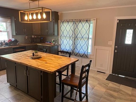 Farmhouse remodeled, sitting on 3 acres! This is a great home that the owner has completely and tastefully updated with new baths, fixtures, doors, flooring, paint, windows, and HVAC. The home has 2 designated bedrooms, however there is the potential for another bedroom by adding a door! Currently the owner is using that room as a tv room. The large open kitchen has enough room for a farmhouse table. The nicely updated kitchen with tiled backsplash and tiled floor opens to a large space that can be used as another dining area or family room. The master bedroom offers a There is a sun porch on the front of the house, that could be used as additional living space. There is a walk-in pantry as well as a walk-in laundry room off the kitchen. At the back of the house is a den, currently used as a "man cave."