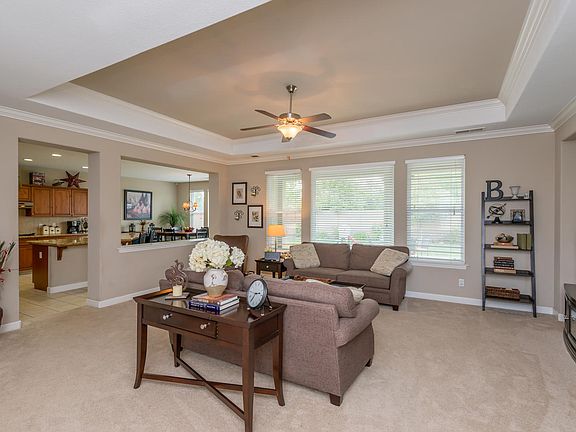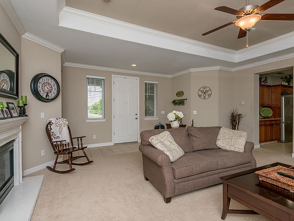 Your guests will love this entry. Great walkway to front door. Covered front porch. Room to sit & chat. Spacious main living area. Open floor plan. Crown moulding. Detailed mantle over fireplace. Perfect for entertaining. Converse with your guests while you cook. Kitchen has storage, storage, storage! Upgraded granite counter tops. Extra counter space. Pantry too. Guests can help prepare meals to share. Island with even more counter top area. Breakfast bar. Built in stove top. Beautiful tiled back splash. Built in oven and microwave. Built in dishwasher for easy clean up. Additional eating area. Lots of windows throughout. Natural light aplenty. Folding area in Laundry room. Deep sink immediately across from washer hook up. Area to install shelves. Large Master suite. Double basins. Large mirror. Separate shower area. Luxurious soaking tub. Tile ledges hold bath pillow perfectly. Guest bath features double basins. Shower & tub. Nice sized bedrooms. Great back yard area.