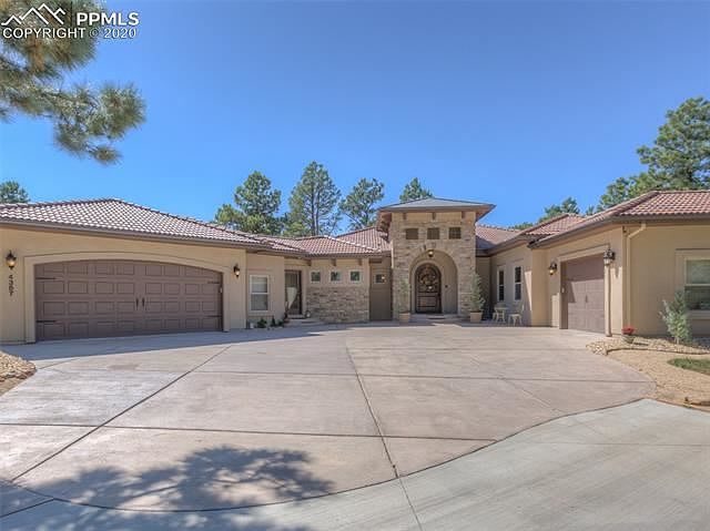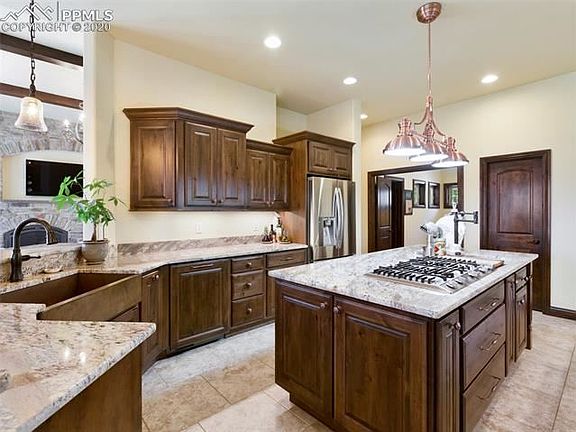 The moment you walk through the cathedral door complete with speak easy window, you realize this beautiful custom home was designed with Tuscan old world ideas while built with modern touches throughout.This custom home was built with multigenerational families in mind.Deck/patio access all with spectacular views of the front range.The Gourmet kitchen is equipped with a Dacor five-burner gas stove cooktop in the large island with prep sink, pot filler faucet and double Dacor wall ovens.2 Master suites. Truly a custom home. Treed Acres with Mature Pines & Front Range Views 4 Bedroom/4.5 Bath, 2.75 Car oversized attached garage with large dog shower + 1 car attached garage with private access to upper guest room. All measurements are approximate.