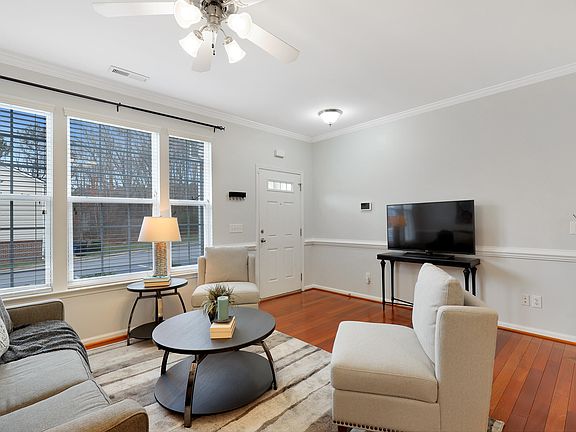 Gorgeous townhouse nestled in one of the most sought-after townhome communities in Raleigh! This lovely home boasts modern comforts with brand new HVAC, a recently replaced roof, and a new water heater. Enjoy hassle-free living with HOA-maintained landscaping and exterior. The open-concept floorplan, plentiful windows, real hardwood floors, and 9-foot ceilings add to the airy, light-filled aesthetic. The functional floorplan allows for plenty of seating around a stunning gas fireplace and a roomy dining area. The huge kitchen has plenty of room for additional dining space or large island. Upstairs you'll find a large primary bedroom with an en suite plus another bedroom and full hall bath. The rear patio has privacy panels and a wooded view that is great for grilling and entertaining. There is an abundance of storage including an outdoor storage closet. Enjoy the bountiful community amenities including a swimming pool, clubhouse, and playground. You can't beat the location convenient to Hwy 40 and 440 just minutes from Cary Crossroads and Lake Johnson Park. HOA does not allow investors. Be sure to view the interactive virtual tour and schedule an in-person showing today!